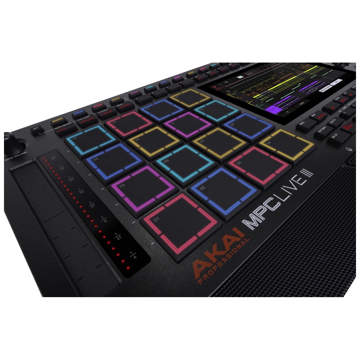 MPC Live III debuts our new MPCe pads: 3D-sensing, ultra-responsive, and designed for more nuanced expression and performance. These pads enable X/Y control of one-shot layers, seamless sample blending, and dynamic note repeats and articulations for more ways to perform and produce with feeling.