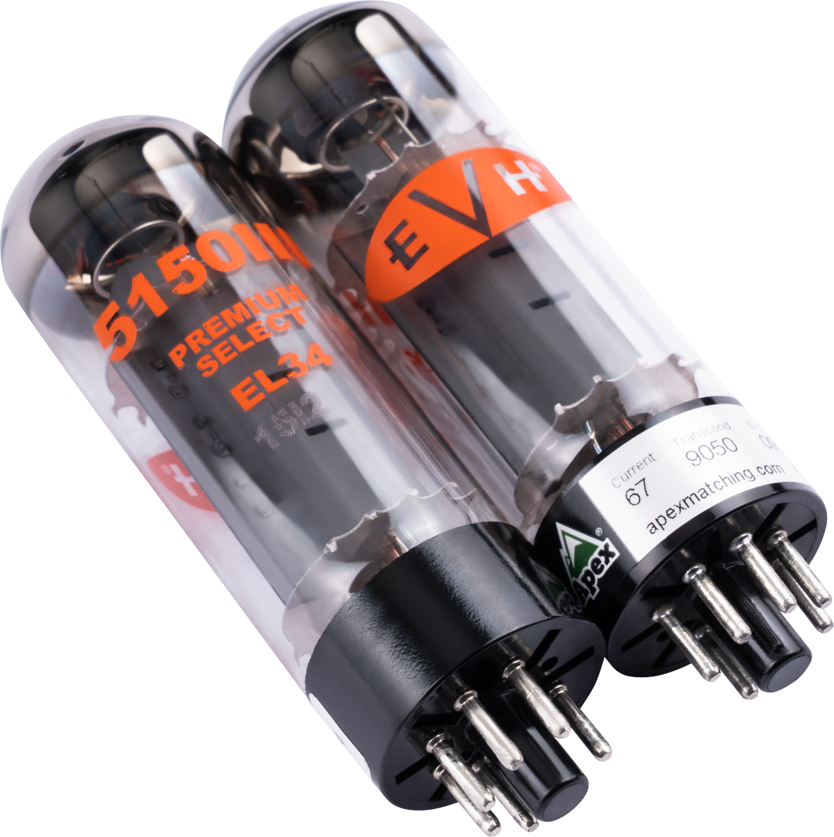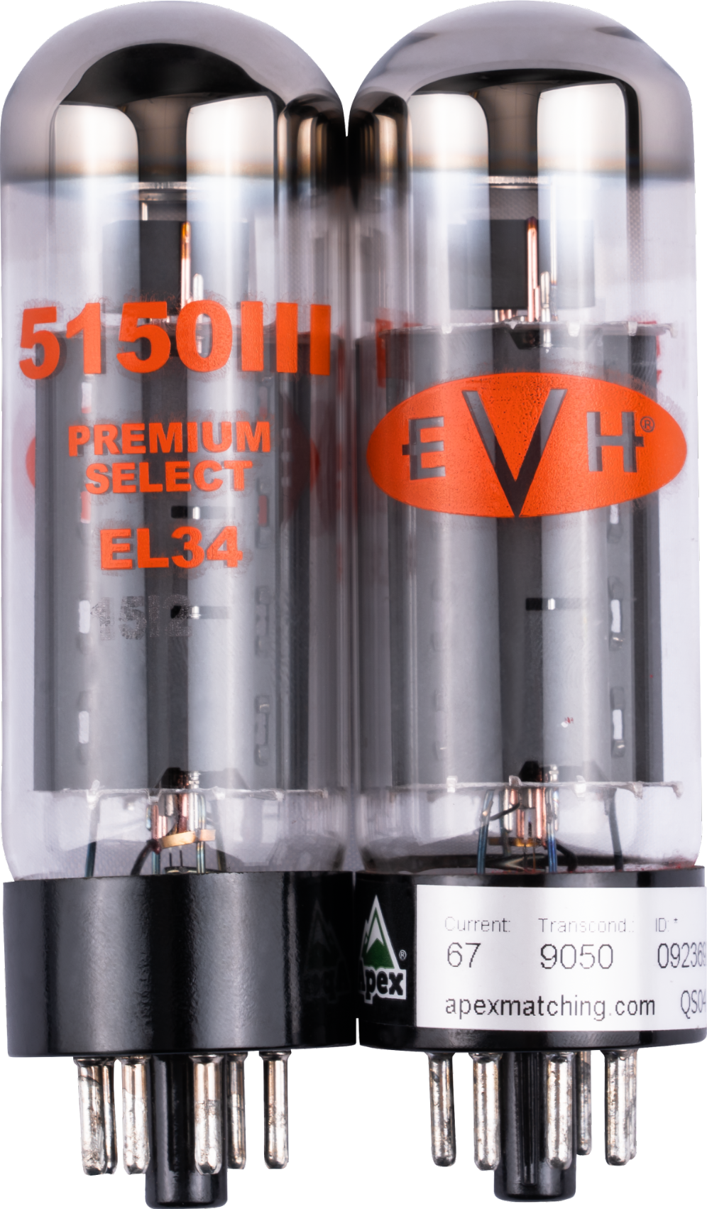 The original power platform behind most high-powered amplifier heads from the '60s onward. Output is generally between 20 and 25 watts, with classic British tone that cuts through the mix with astounding mid-range clarity and crispy highs for the pinnacle of intense, high-gain performance. EVH EL34 tubes are burned in and matched for maximum stability and performance.