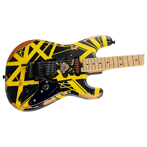 Sporting Eddie's black and yellow paint job and an aged look, the all-new Frankie features a basswood Stratocaster®-style body paired to a graphite-reinforced quartersawn maple neck. An oiled finish on the back of the neck allows for hours of playing comfort, while the 12"-16" compound radius maple fingerboard with 22 jumbo frets was designed for fast and furious playing styles.