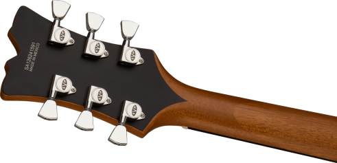 The all-new SA-126 features a Mahogany body that is chambered, with a basswood Centerblock added for stability and tone. Capped with a maple top w/ 5 ply body binding, this thing emits “TONE”. The neck is a 22 fret 12”-16” compound ebony fingerboard with jumbo frets and triple block inlays on a graphite reinforced mahogany neck. With a scale length of 24 and three quarters… this feels like a modern - classic that is familiar and comfortable. Finally, a spoke wheel truss rod adjustment at the butt end of the neck for easy adjustments, on the fly.