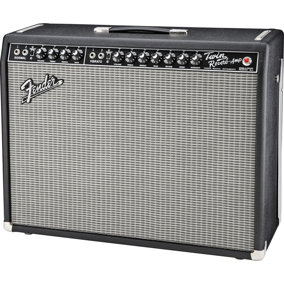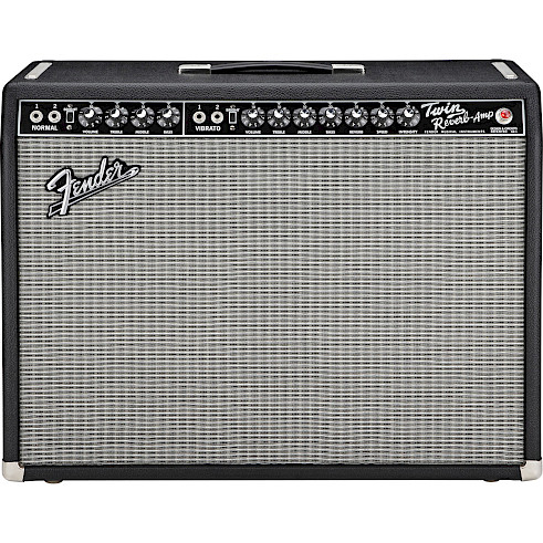 The 85-watt (at 4 ohms) reissue '65 Twin Reverb® features four 6L6 Groove Tubes® output tubes, four 12AX7 preamp tubes, two 12AT7 preamp tubes, two 12" 8-ohm Jensen® C-12K speakers, dual channels (normal and vibrato), Fender® reverb, vibrato, two-button reverb and vibrato on-off footswitch, tilt-back legs, black textured vinyl covering and silver grille cloth.