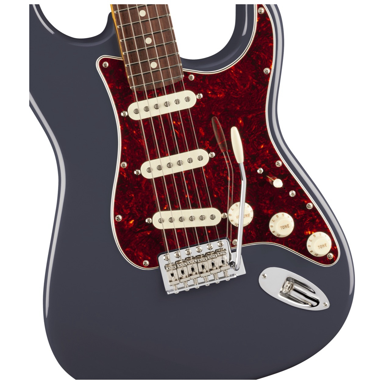 The perfect blend of vintage charm and modern performance – the American Professional Classic Stratocaster®. Under the hood, vintage-inspired Coastline™ '57 Stratocaster® pickups deliver depth, punch and sparkle while the sleek Modern "C" neck provides exceptional comfort and playability. Fender Staggered ClassicGear™ tuners provide classic looks and precise tuning stability. Boasting custom-faded vintage and signature Fender® fini