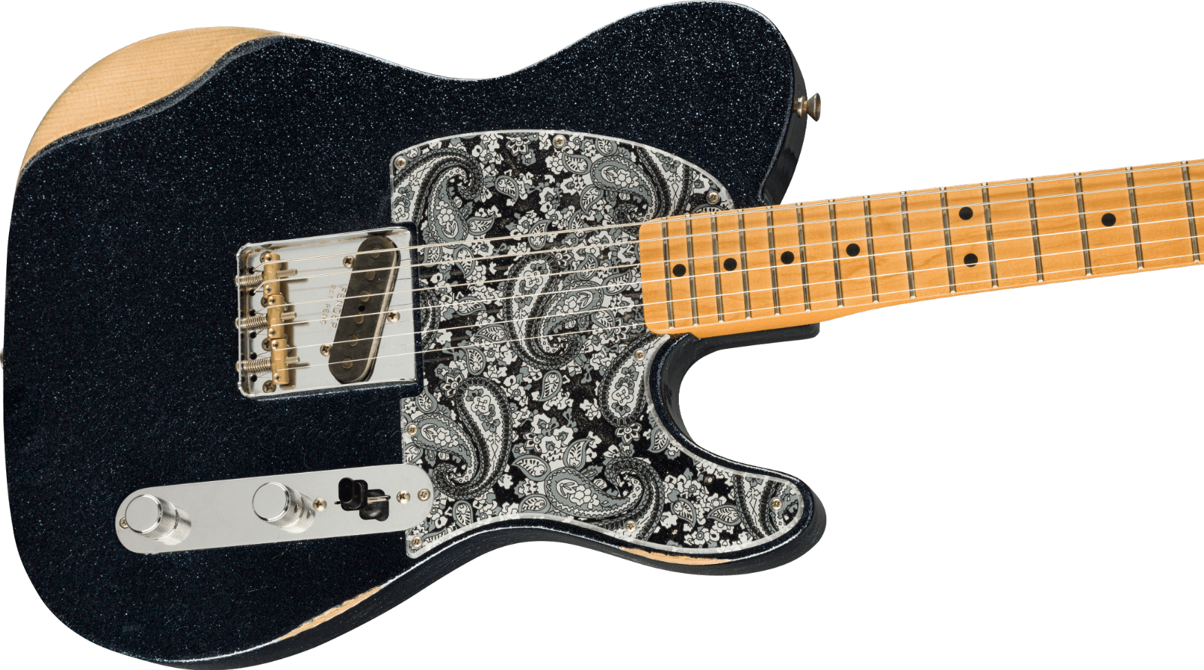 The Road Worn Black Sparkle lacquer finish and aged hardware give this Tele a classic "broken-in" look and feel.