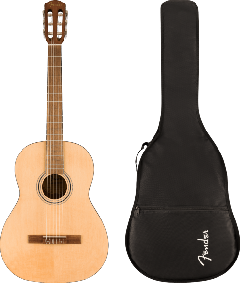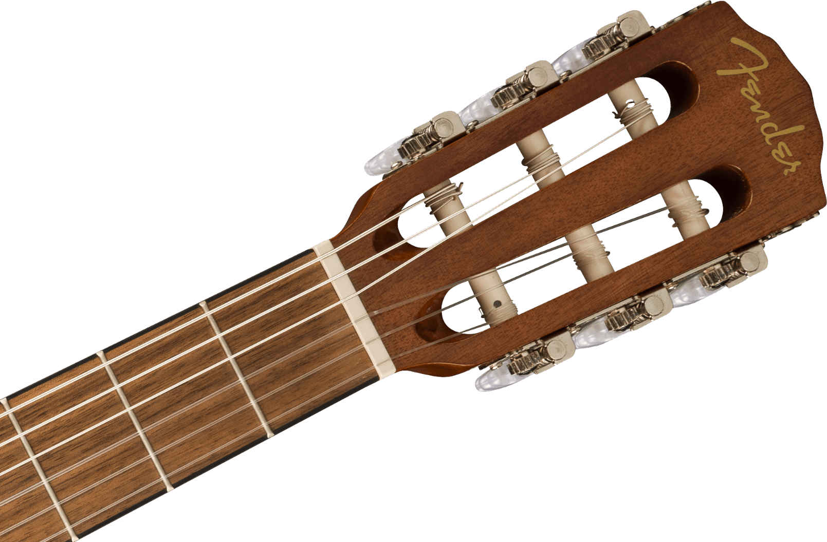 The Spruce top provides bright, crisp articulation while the Okoume back and sides add resonant depth and harmonic texture. Each guitar features a walnut fingerboard and bridge that provides rich tonal transfer and improved sustain, complemented by normal tension Fender® nylon strings for the perfect balance of warmth and clarity from first chord to final note. An elegant gloss finish combines both form-and-function adding dimension to the woods appearance while offering superior protection against everyday wear-and-tear.
