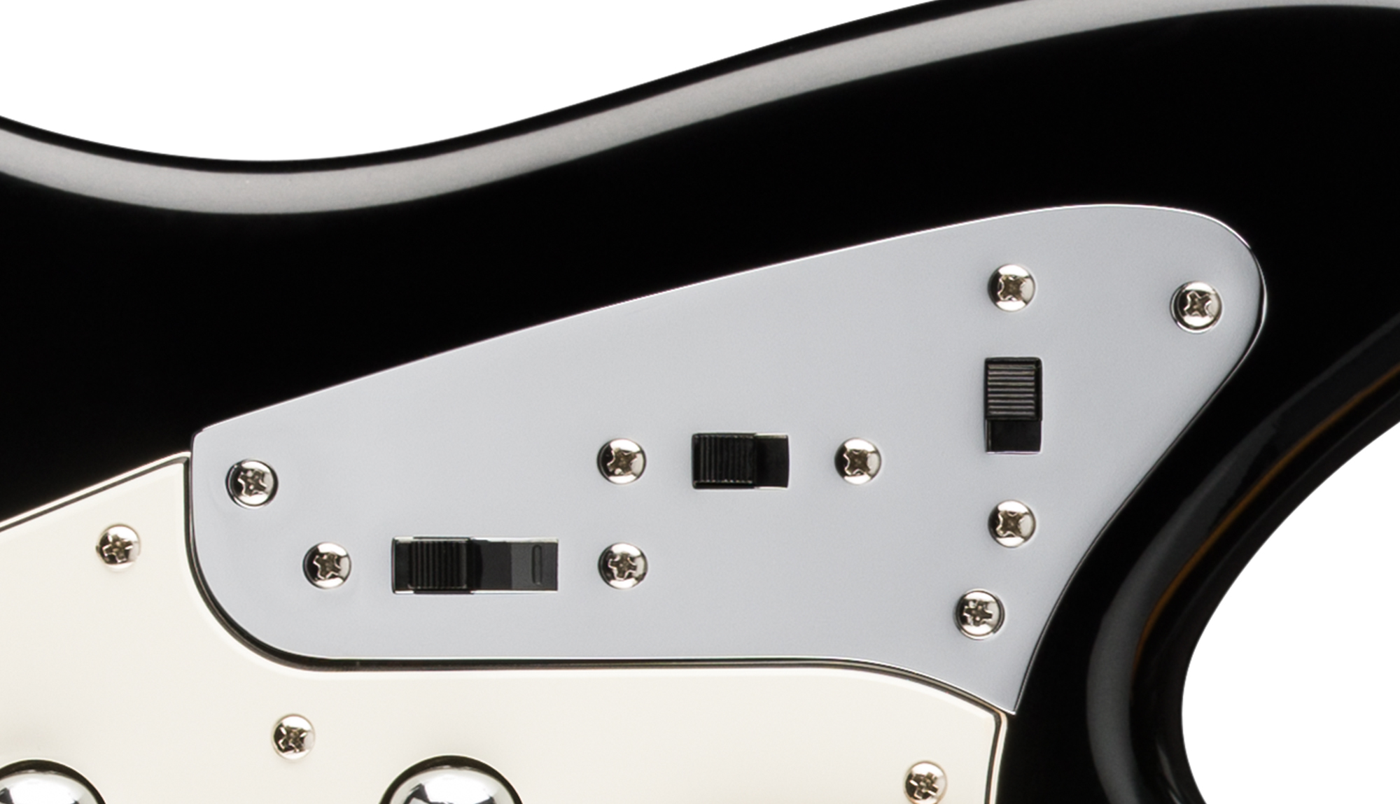 A refined take on classic Jaguar® electronics, this custom wiring configuration employs three upper-horn slide switches for enhanced sonic control. The thoughtfully designed system includes a Pickup Selector switch and dual High Pass Filters with series capability, providing an expanded palette of tonal options.
