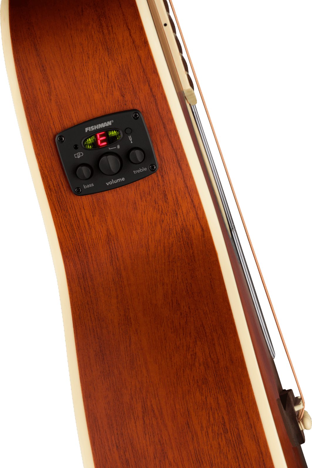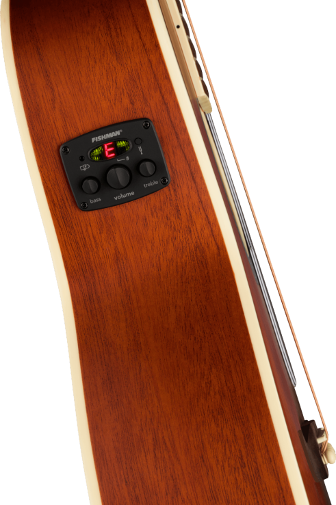A Fishman® pickup/preamp system gives your acoustic instrument peerless amplified performance, with a variety of onboard controls and no compromise whatsoever on pure, rich and resonant acoustic tone. The built-in tuner is conveniently placed right where you can see it, helping to keep your intonation right on the money.