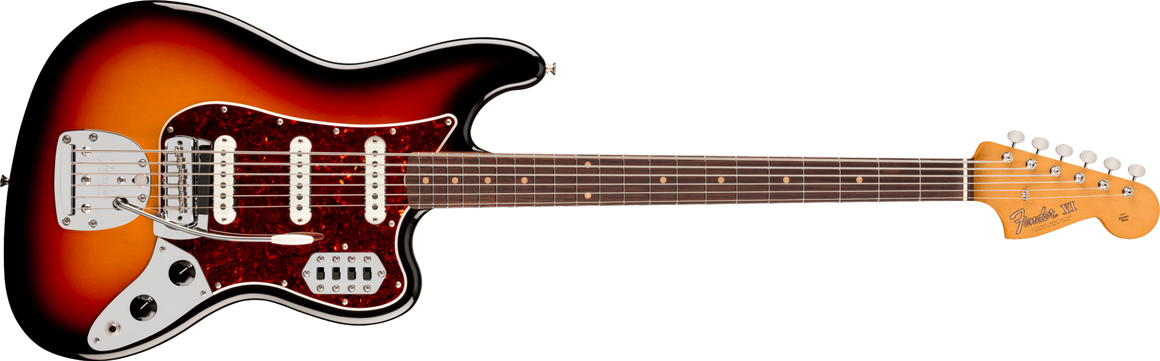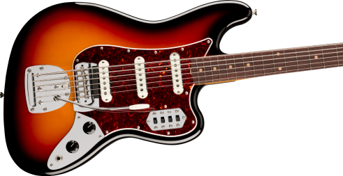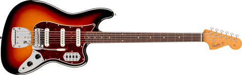 The Vintera® III Early '60s Bass VI® features an alder body and a maple neck with rosewood fingerboard for classic Fender tone that's full of punch and clarity. The early '60s "C"-shape, 30" scale maple neck with 7.25" radius rosewood fingerboard and vintage-tall frets provides supreme comfort and outstanding feel. At its heart, you'll find three vintage-style early '60s single-coil pickups that deliver all the deep and growling, rich and articulate tone that made Fender® famous. Other features include a vintage-style floating tremolo for expressive vibrato, individual on/off switches for each pickup, vintage-style Bass VI mute and vintage-style tuning machines for enhanced tuning stability.