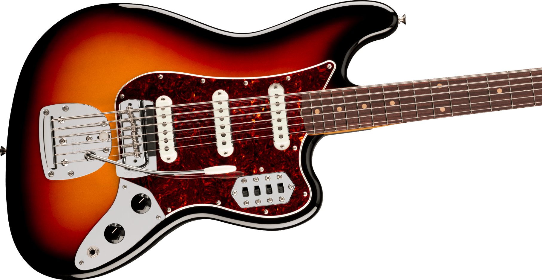 These Jaguar-style pickups are dynamic and capable of delivering everything from beefy bass tones to screaming, overdriven guitar-like crunch - especially when used in conjunction with the "strangle switch."