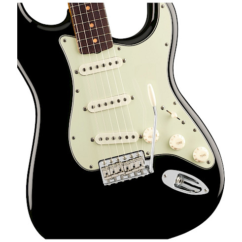 The Vintera® III Early '60s Stratocaster® features an alder body paired with a maple neck and rosewood fingerboard, delivering that unmistakable Fender sound brimming with punch and crystal-clear articulation. The authentic early '60s “C”-shaped neck profile offers an instantly familiar playing experience that feels natural in your hands, while the 7.25" radius fingerboard with vintage-tall frets ensures supreme comfort and outstanding feel. At its heart, three meticulously crafted vintage-style early '60s single-coil pickups capture the bright, chimey tones that established Fender's reputation during this pivotal era. The vintage-style synchronized tremolo system provides effortless pitch manipulation, while period-correct vintage-style tuning machines deliver authentic looks with superior tuning precision.