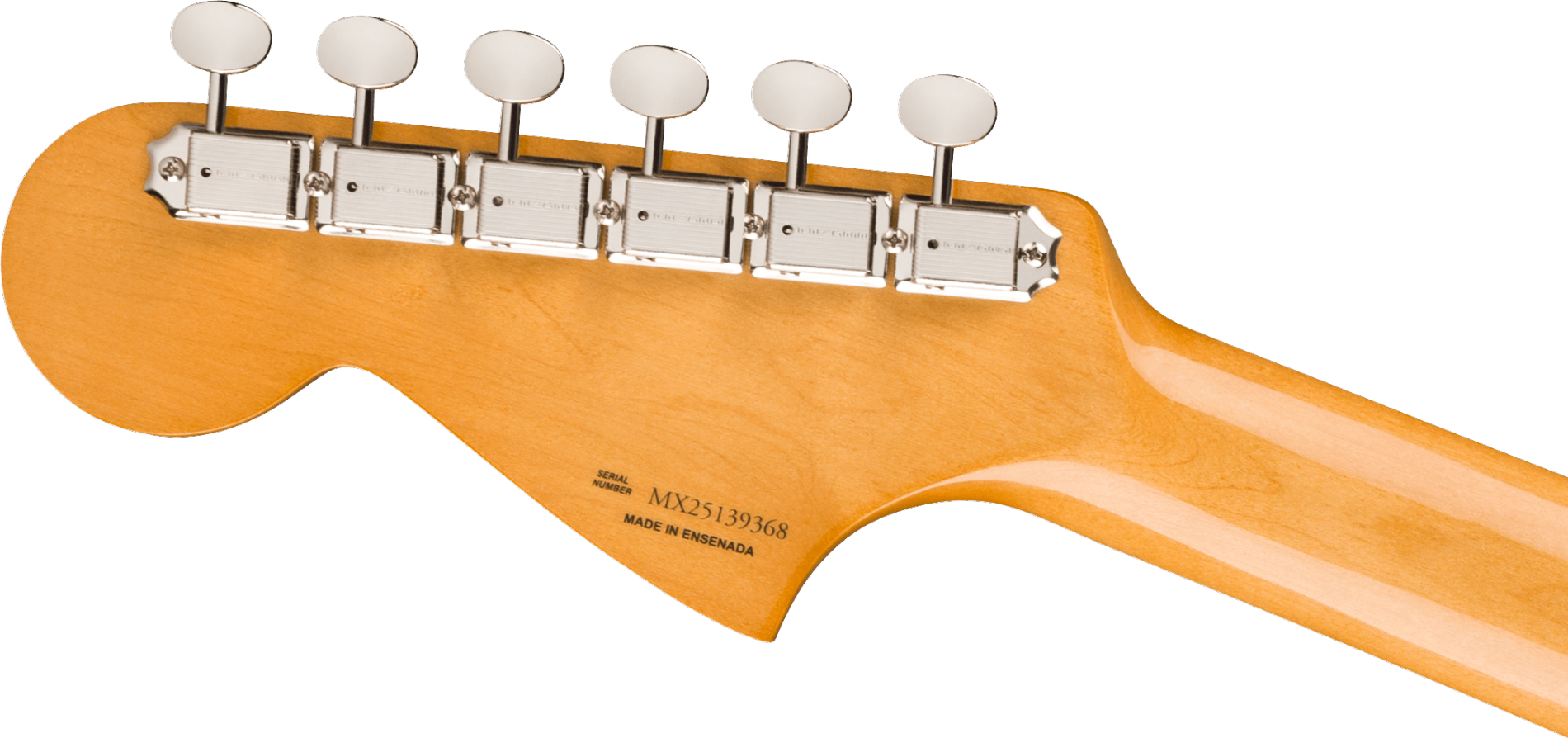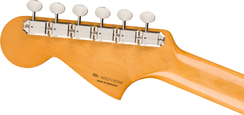 The Vintera® III Mid '60s Jaguar® features an alder body and a maple neck with rosewood fingerboard delivering that unmistakable Fender sound brimming with punch and crystal-clear articulation. The authentic mid '60s “C”-shaped neck profile offers an instantly familiar playing experience, while the 7.25" radius fingerboard with vintage-tall frets ensures supreme comfort and outstanding feel. At its heart, you'll find a pair of vintage-style mid '60s single-coil pickups that deliver all the sweet and sparkling tone that made Fender® famous. Other features include a vintage-style floating tremolo with tremolo lock for expressive vibrato, period-correct rhythm circuit for enhanced tonal versatility, vintage-style Jaguar® mute and vintage-style tuning machines for enhanced tuning stability.