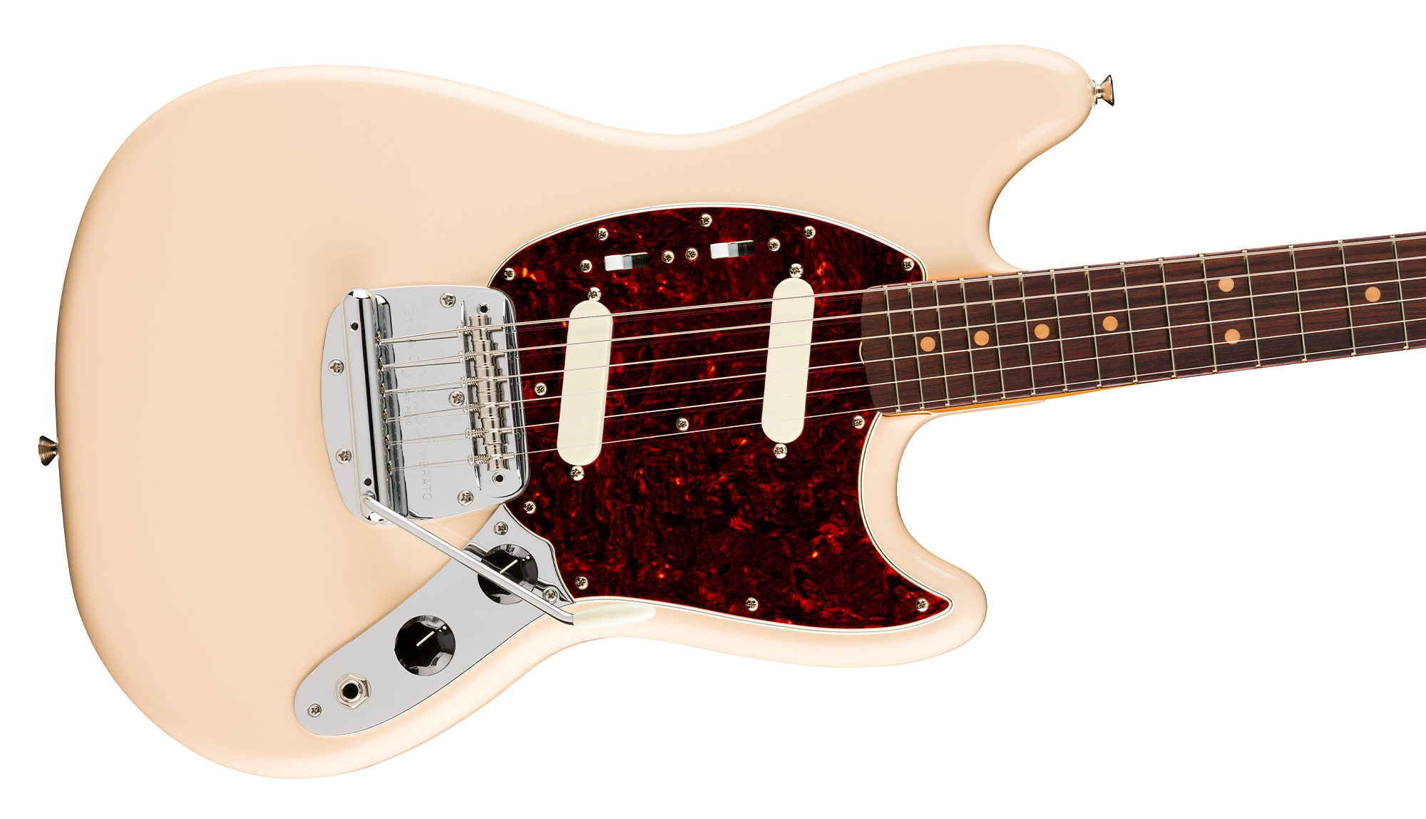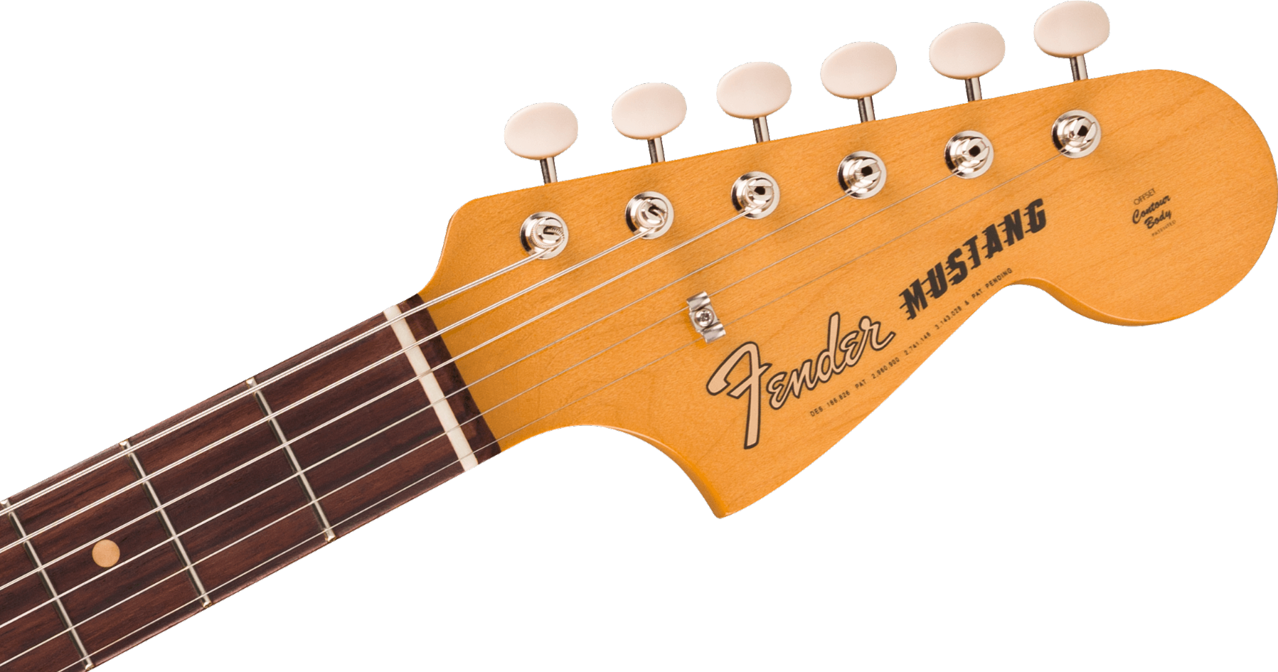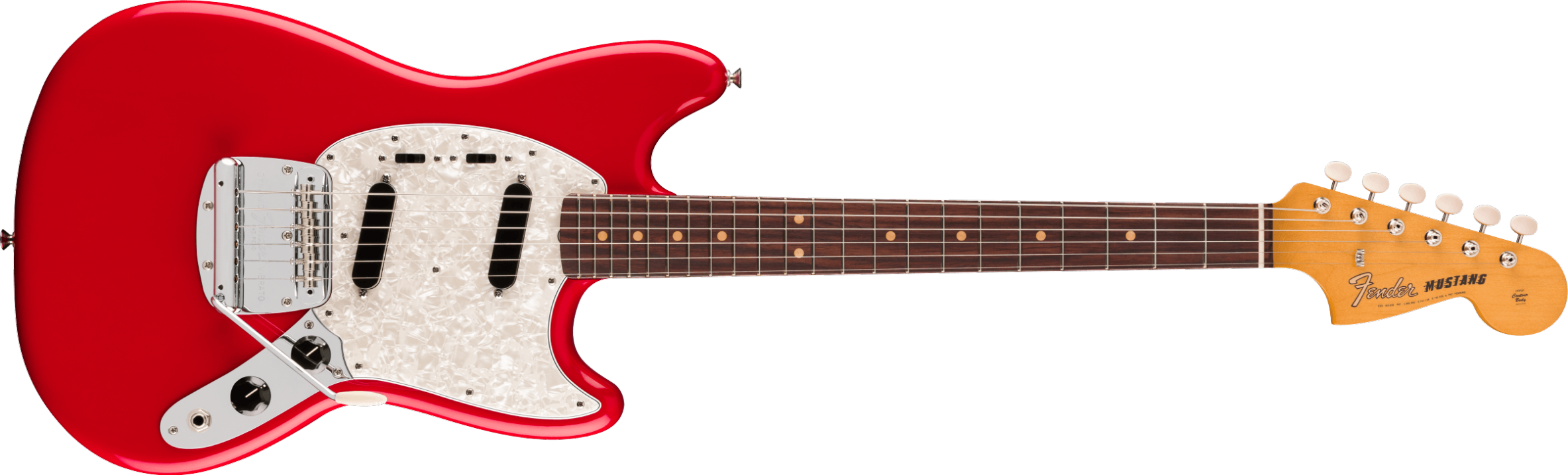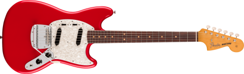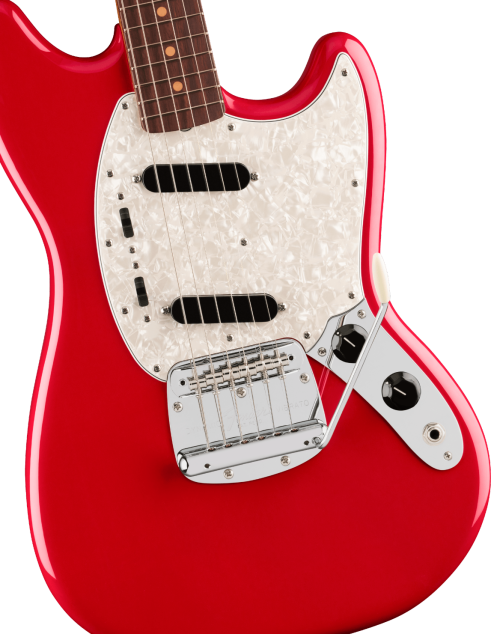 The Vintera® III Mid 60s Mustang® features an alder body and maple neck with rosewood fingerboard for classic Fender tone brimming with punch and crystal-clear articulation. The authentic mid '60s “C”-shaped neck profile offers an instantly familiar playing experience that feels natural in your hands, while the 7.25" radius fingerboard with vintage-tall frets ensures supreme comfort and outstanding feel. At its heart, you’ll find a pair of vintage-style mid '60s single-coil pickups that deliver all the sweet and sparkling, warm and woody tone that made Fender famous. The vintage-style Mustang® "floating" tremolo provides effortless pitch manipulation, while period-correct vintage-style tuning machines deliver authentic looks with superior tuning precision.