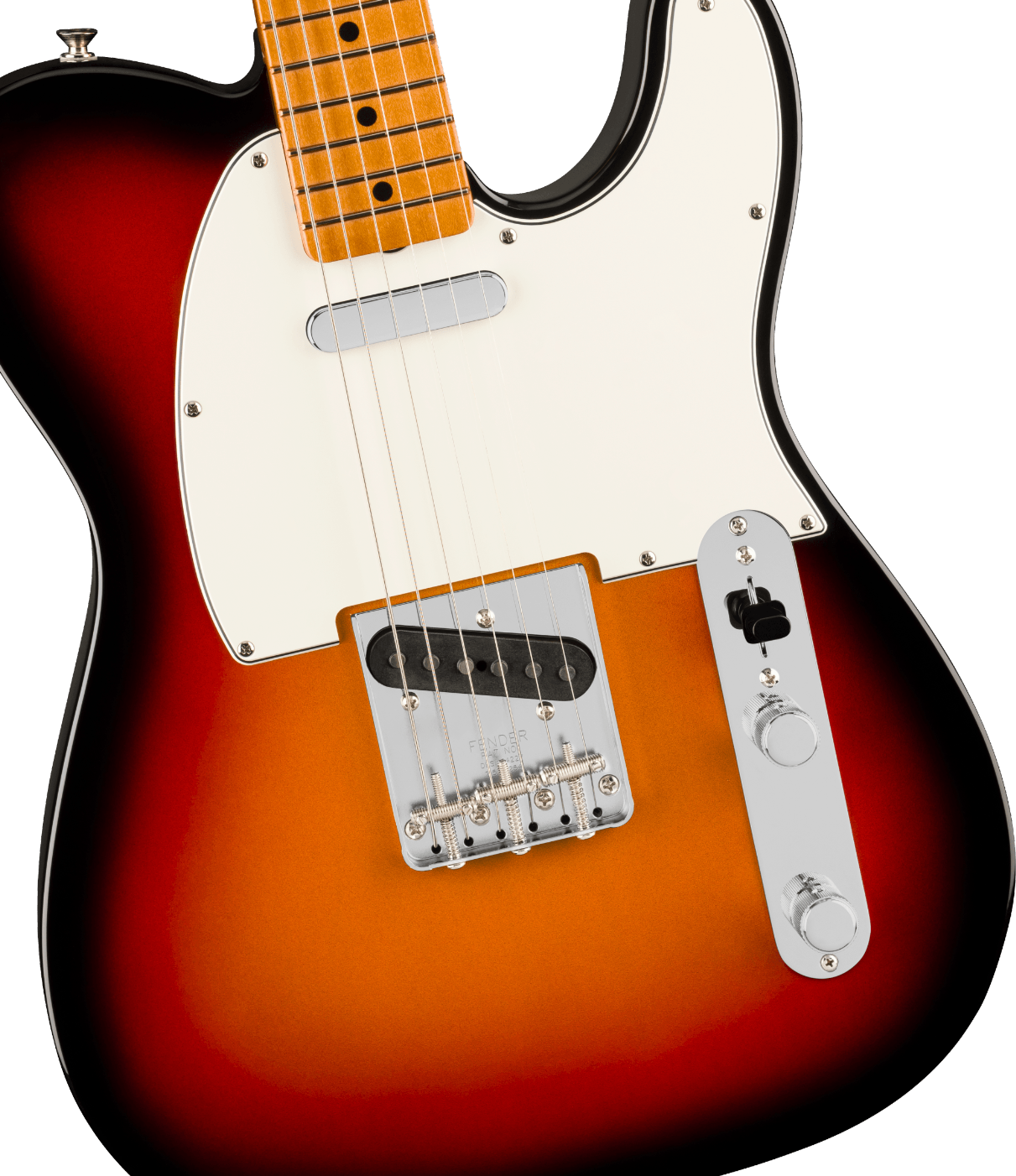 This Vintera® III Telecaster® features a classic 3-saddle bridge with rock-solid string-through-body design and three threaded steel saddles for authentic ‘60s Tele® twang.