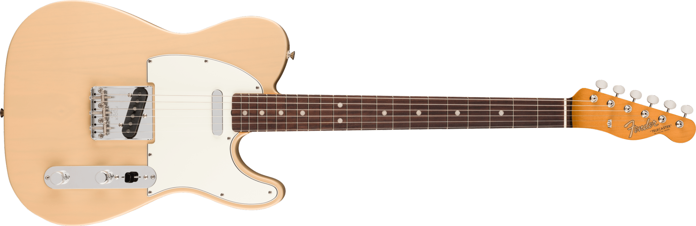 This Vintera® III Telecaster® features a classic 3-saddle bridge with rock-solid string-through-body design and three threaded steel saddles for authentic ‘60s Tele® twang.