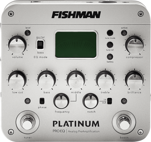 The Fishman Platinum Pro EQ puts you in full control of your acoustic tone with pristine Class A preamplification, powerful EQ, transparent one-knob compression, professional connectivity for stage and studio, and so much more.