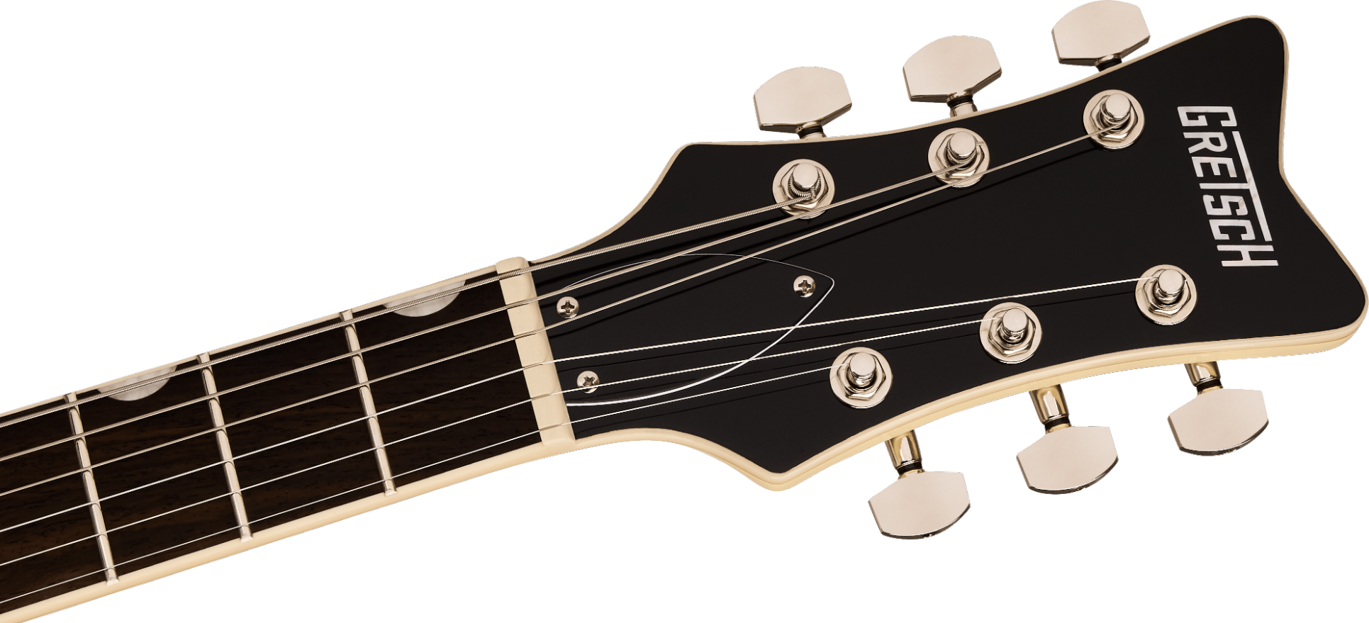 At the heart of each Electromatic Jet is a mahogany body with max core chambering for exceptional acoustic balance and strong attack. A smooth rounded heel allows for unimpeded access to the highest frets, while subtle comfort contours on the body create a balanced ergonomic fit for effortless playability and enhanced comfort.