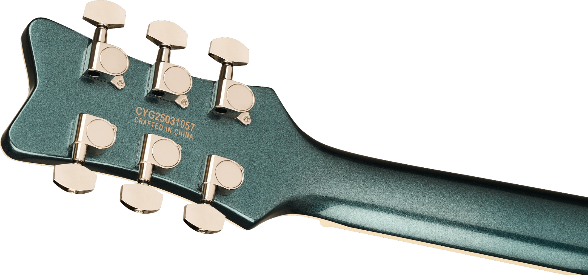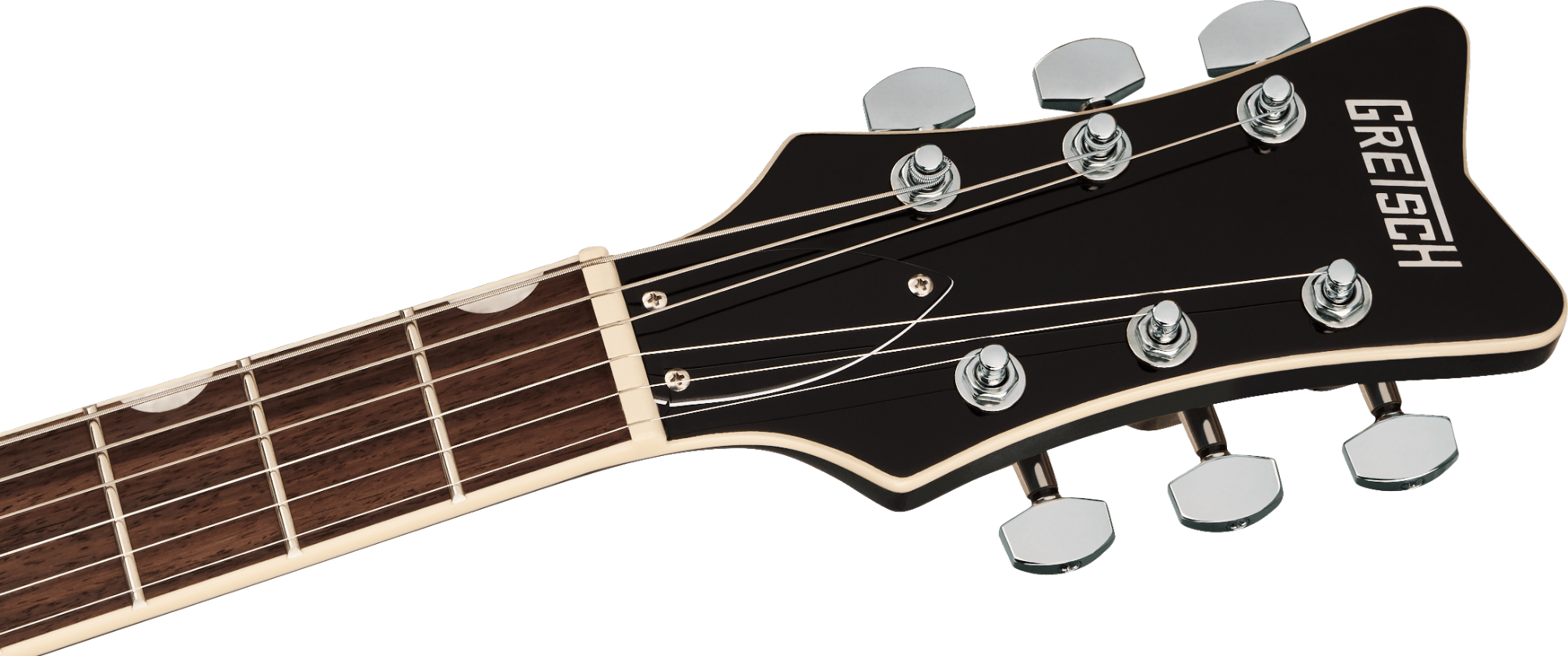 At the heart of each Electromatic Jet is a mahogany body with max core chambering for exceptional acoustic balance and strong attack. A smooth rounded heel allows for unimpeded access to the highest frets, while subtle comfort contours on the body create a balanced ergonomic fit for effortless playability and enhanced comfort.​