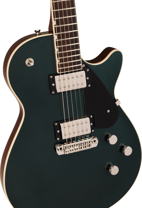 The Electromatic Jet is equipped with a control circuit designed to give you complete tonal control. A master volume with treble bleed circuit provides precise adjustment while maintaining clarity at any volume. Individual pickup tone controls provide intuitive control, calibrated for stellar tone at every setting. Push/Pull tone controls unlock snappy and glassy true single-coil timbres for each pickup, and better yet each single coil combines for a hum-cancelling pair in the middle position.