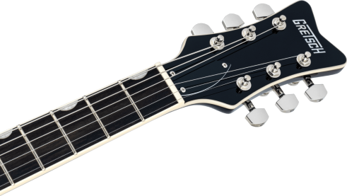 At the heart of each Electromatic Premier Jet is a mahogany body with max core chambering and a carved maple top. Designed for exceptional acoustic balance, this precise combination delivers strong attack with a rich, present mid-range, big lows and shimmering musical highs. A smooth rounded heel allows for unimpeded access to the highest frets, while subtle comfort contours on the body create a balanced ergonomic fit for effortless playability and enhanced comfort.