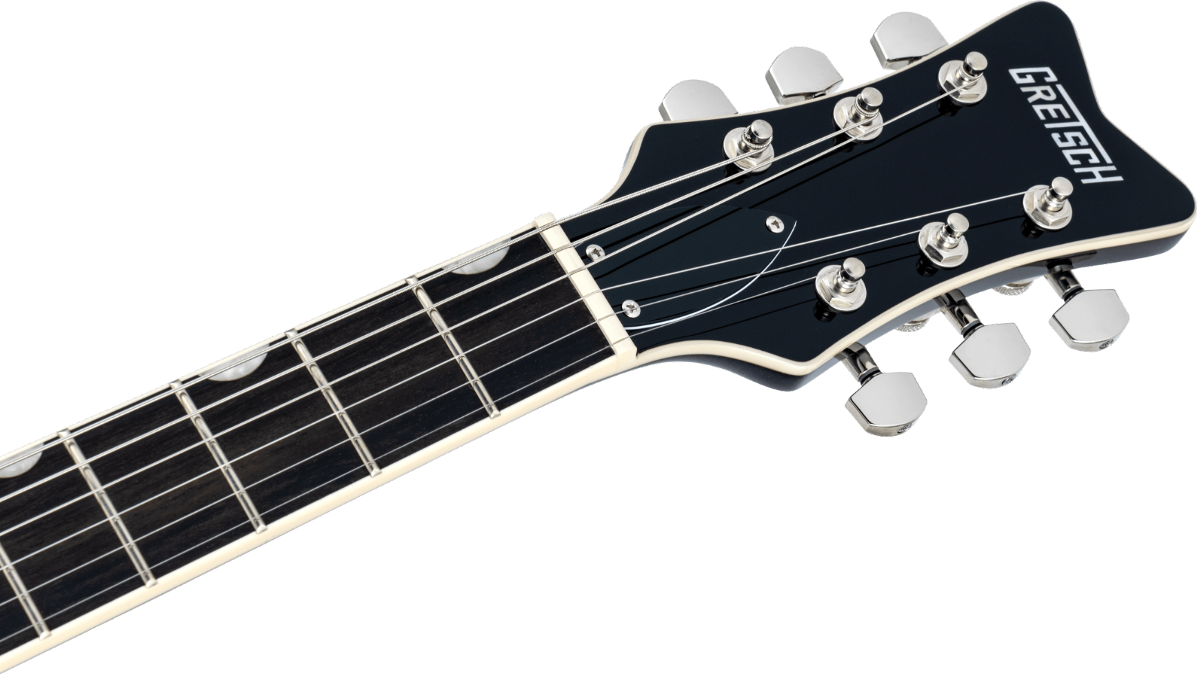 When it comes to tone and playability, there’s almost nothing more important than an instrument’s fingerboard. Electromatic Premier Jets feature a genuine ebony fingerboard with 1-ply aged white binding that generates both smooth, silky feel and warm, woody tone. Luminlay® glow-in the-dark side dots provide exceptional visibility even on the darkest stages