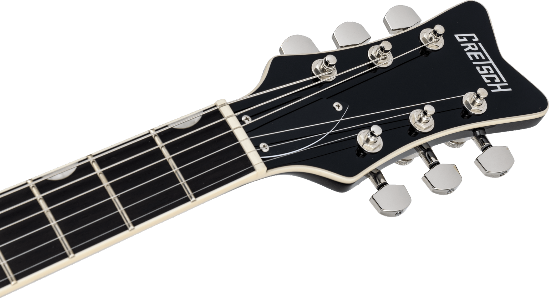 When it comes to tone and playability, there’s almost nothing more important than an instrument’s fingerboard. Electromatic Premier Jets feature a genuine ebony fingerboard with 1-ply aged white binding that generates both smooth, silky feel and warm, woody tone. Luminlay® glow-in the-dark side dots provide exceptional visibility even on the darkest stages
