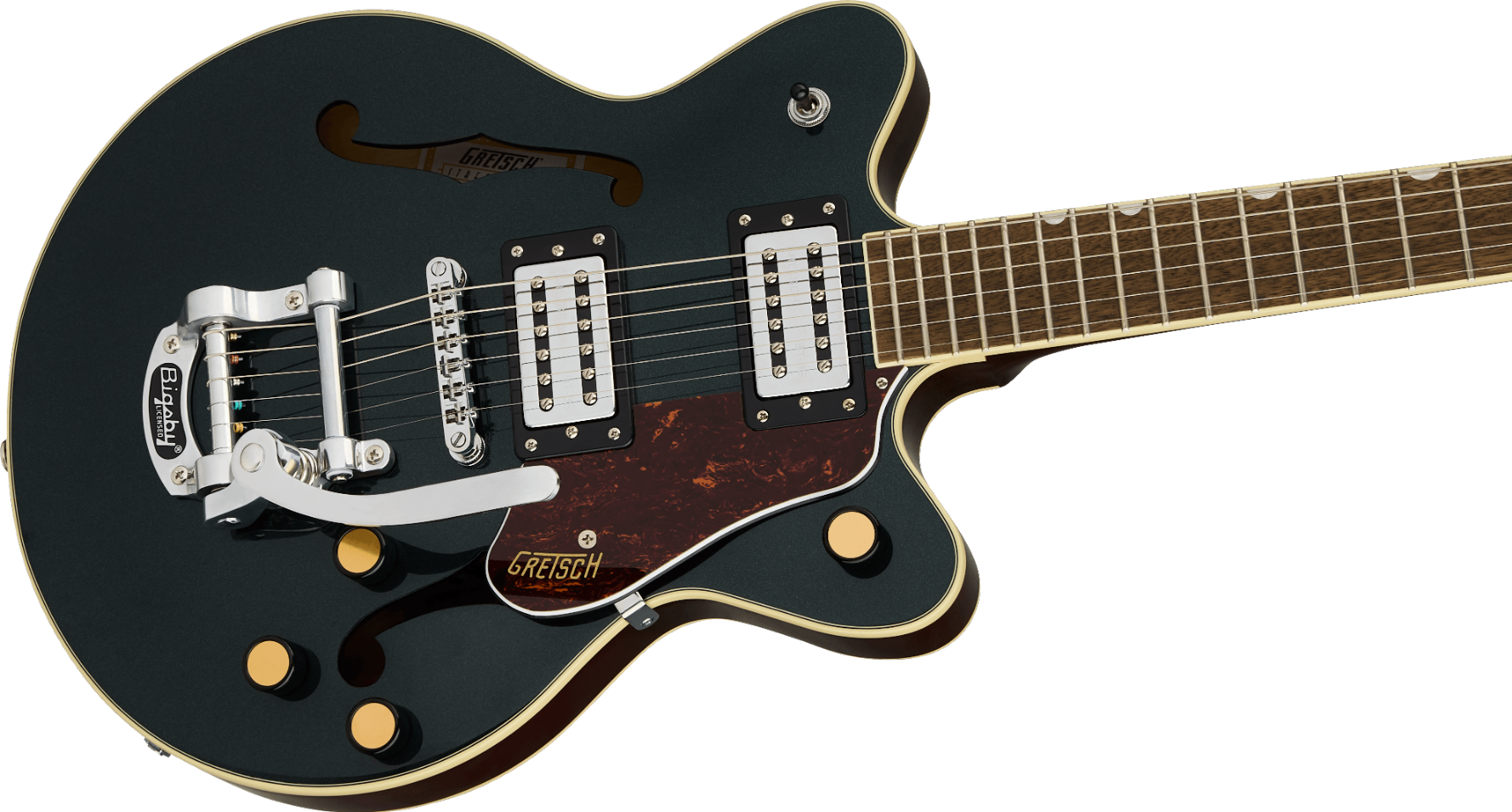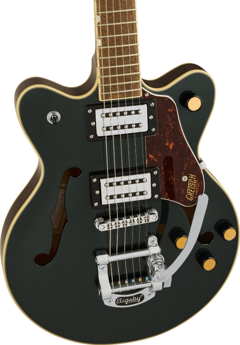 The G2655T Streamliner™ Center Block Jr. Double-Cut with Bigsby® bursts into the modern era with powerful sound and style in a smaller package. The sleek G2655T is designed for the guitarist who demands more than the mundane from an instrument - more performance, more style and most importantly, more volume - while retaining everything you expect from a Gretsch.
