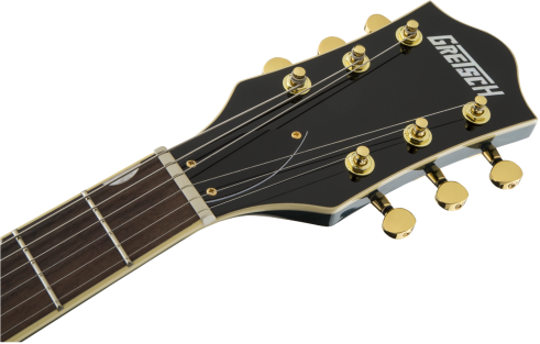 The G5655TG Electromatic® Center Block Jr. Single-Cut with Bigsby® and Gold Hardware features a smaller-sized body with a chambered spruce center block for dynamic resonance, high gain power and lightweight comfort.