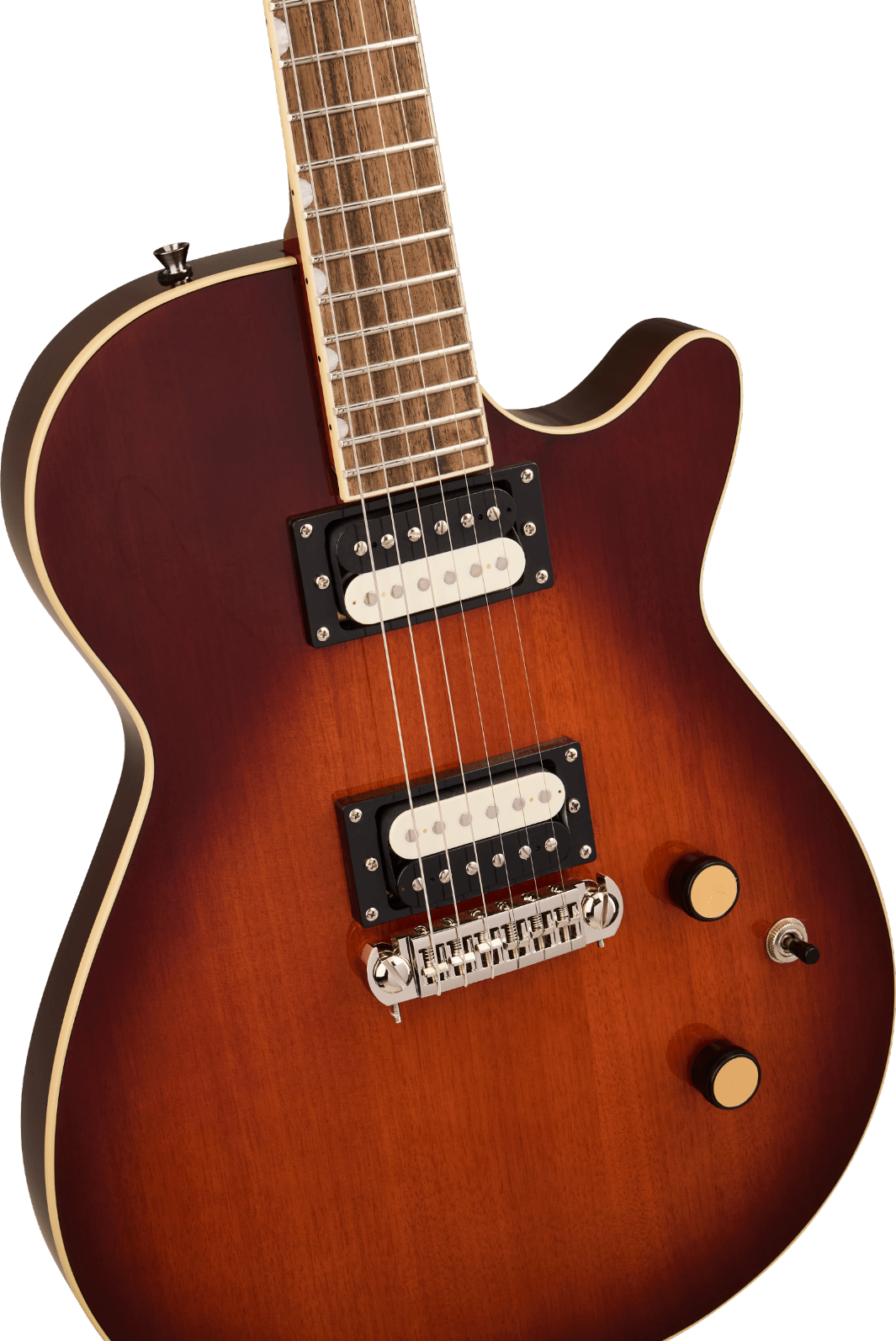 The Streamliner™ Jet™ is a no-nonsense tone machine loaded with exciting new features to deliver exceptional performance, easy playability and rock-solid tuning stability at an incredible value. Featuring HotWire™ humbuckers, a Fast “C” neck profile, Pitch-Perfect™ head angle, and an adjustable wraparound bridge, the Streamliner Jet has everything you need to crank out massive riffs and searing solos without breaking the bank.
