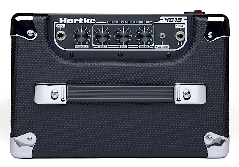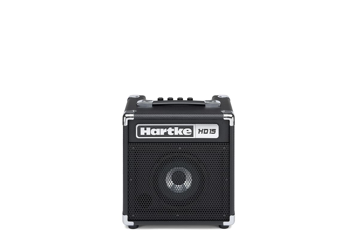 The HD15 (15 watt, 6.5" driver) features Hartke's patented HyDrive speaker technology, a meticulously crafted hybrid (half paper, half aluminum) cone bass speaker. Combining the warmth and roundness of paper with the punch and attack of aluminum, the HyDrive design produces a serious tone ideal for bassists of all genres and styles.