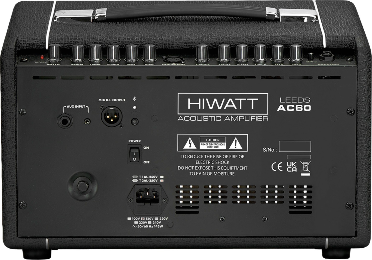 Hiwatt's first dedicated acoustic amp, the Leeds AC 60 packs two channels and 60 watts of trademark Hiwatt headroom into a compact portable format. With an analog preamp paired with chorus and reverb to add extra dimension to your acoustic playing, the balanced XLR input allows you to blend in crisp vocals or to mic up your acoustic guitar with ease. The AC60 will perform at any volume without colouring your tone.