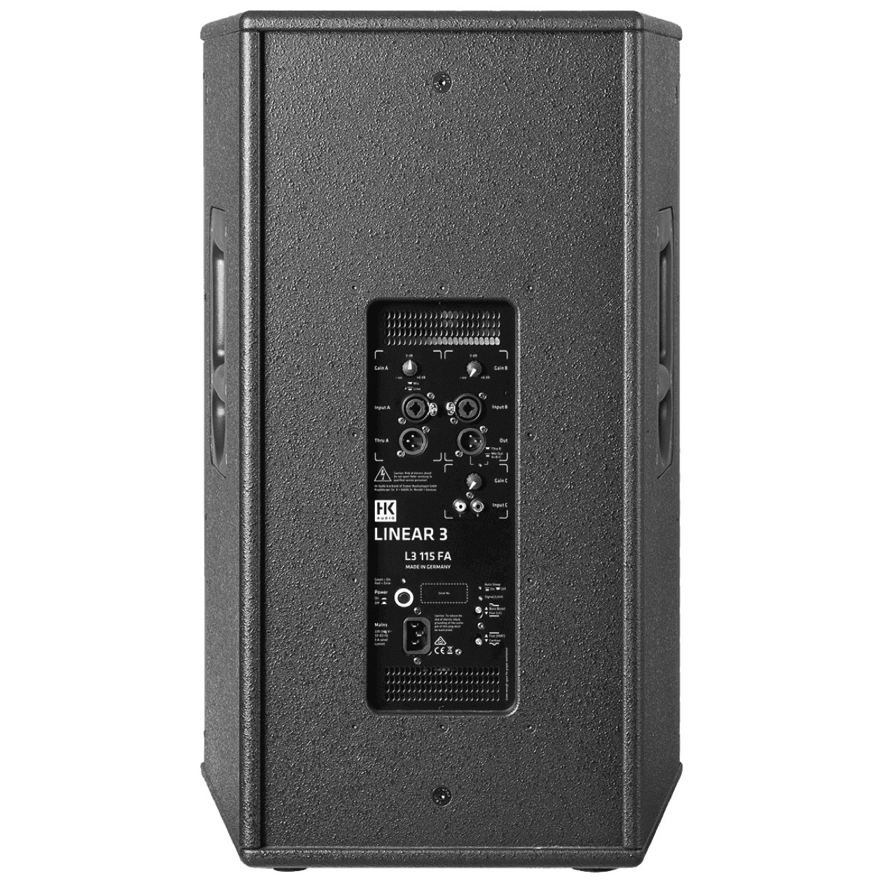 The L3 115 FA is a full-range loudspeaker from the Linear 3 series. Made of wood, it features a 15" driver, a tweeter driver, and onboard amplification totaling 1.2 kW of power.