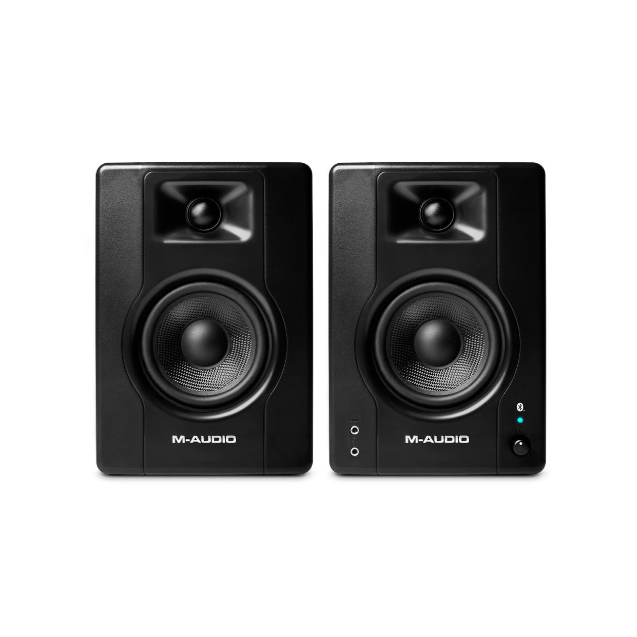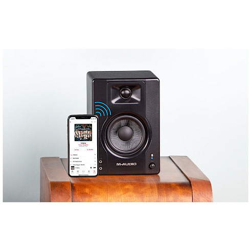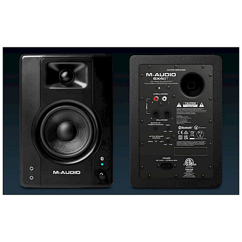The M-Audio BX4BT Multimedia Reference Monitors offer the flexibility to playback audio from any Bluetooth® streaming device with excellent studio quality sound. This opens the possibilities of playing audio from any Bluetooth® device including a turntable, phone, or even a computer to stream a reference mix from your computer. Get a better listening experience with our compact, powerful, Bluetooth® enabled M-Audio BX4BT multimedia reference monitors.