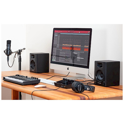 The M-Audio BX4BT comes with a great DAW to get you started with creating music right out of the box with the included MPC Beats. MPC Beats is a DAW that makes it easy and fun to create professional sounding podcasts, music, or pro sounding beat productions on any Mac or PC.