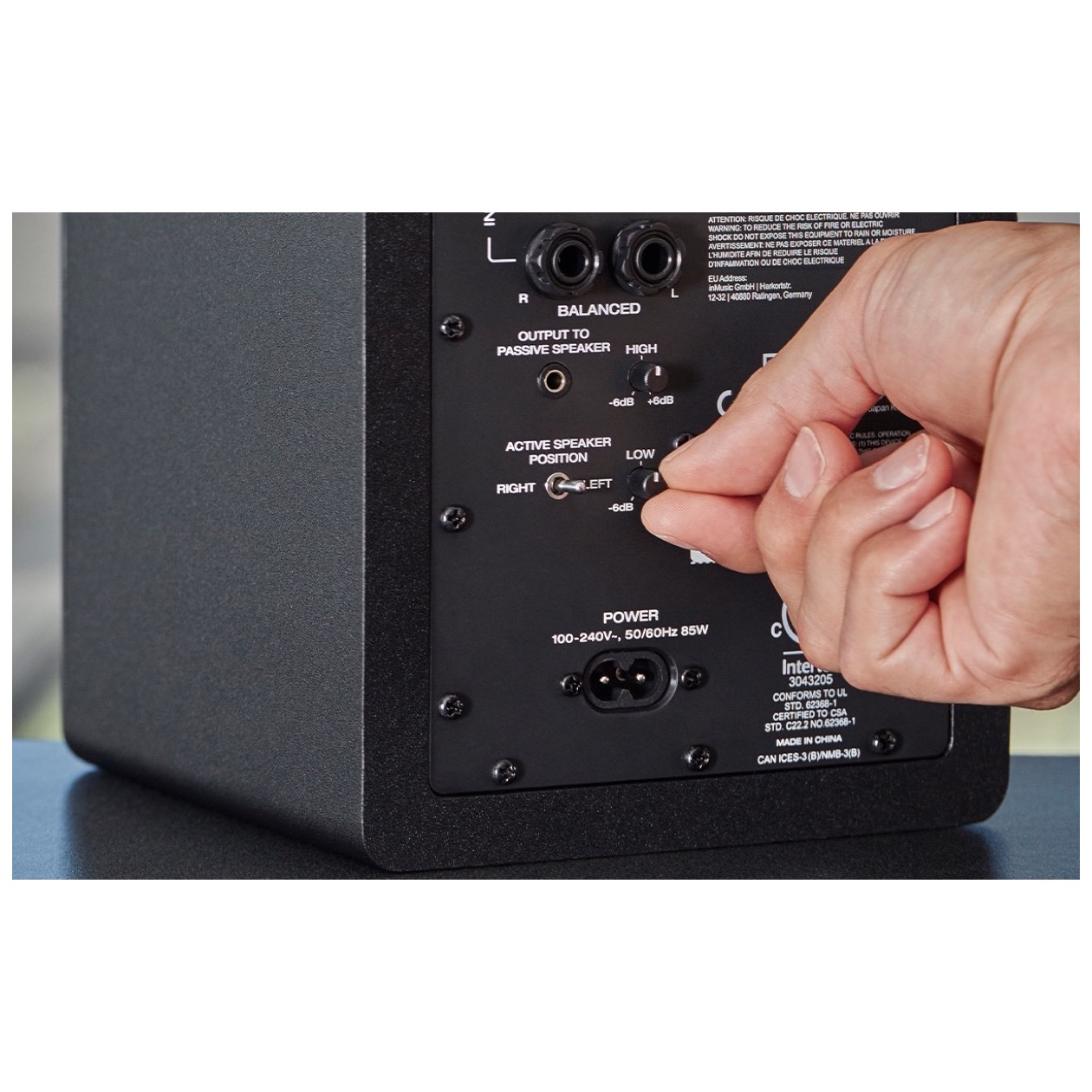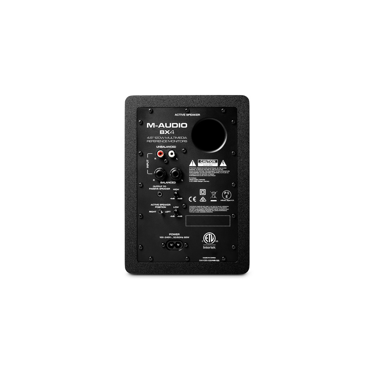 Features that are usually only found on high-end, expensive studio monitors are included on the rear panel of the M-Audio BX4. High-EQ and Low-EQ controls dial in the perfect sound for your environment and let you customize the sound of the BX4. The Left/Right Active Speaker Position Switch lets you choose which speaker is the Left or Right side. This is very useful if you are left-handed and want the speaker with the front panel volume control on your left side. It’s your choice!