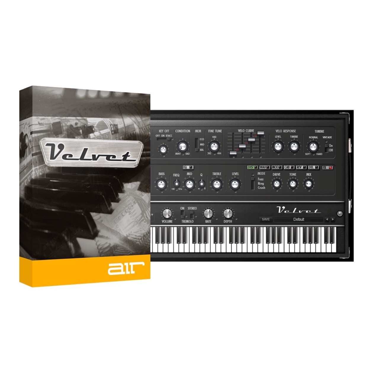 AIR Music’s Velvet is a virtual electronic piano that combines five legendary electric pianos from the 60s and 70s into one versatile instrument. Based on the Fender Rhodes Suitcase, Fender Rhodes MK I and MK II Stage Pianos, Wurlitzer 200A and Hohner Pianet-T, Velvet accurately emulates the sound quality, response and nuances of each original instrument to bring your piano tracks to life.