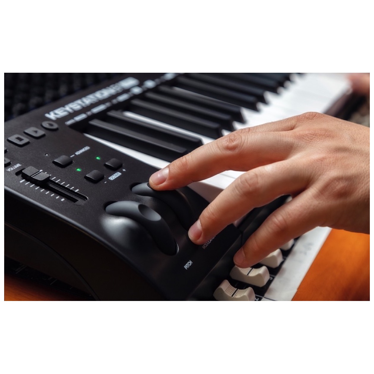 With Keystation 61 MK3, maximizing your creativity while minimizing the complication is easy: Use the fully assignable octave range buttons; pitch-bend and modulation wheels; volume slider, and transport and directional controls to play, perform, and record with your music software without using a mouse or trackpad. Keystation 61 MK3 also features a 5-pin MIDI output for connecting to your favorite hardware synth and a 1/4” (6.3mm) sustain pedal input that lets you use an external control pedal, such as the M-Audio SP2 (sold separately), for genuine piano sustain.
