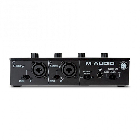 M-Track Duo offers zero-latency monitoring of the mic, line or instrument input signal through both the main stereo 1/4/’ outputs and stereo1/4” headphone output. The USB/Direct switch adjusts the balance between the direct inputs and the playback from your computer software. This makes it easy to record new parts or add parts to an existing composition.