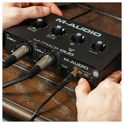 Our engineers designed the Crystal Preamps to provide you with a transparent, low-noise preamp that guarantees the best sound from your microphones and captures your performance exactly the way you intended. The M-Track Duo incorporates pristine A/D converters for digital audio with explosive dynamic range that captures every nuance and subtlety of the performance.
