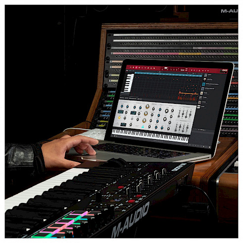 It’s simple to use the Oxygen Pro 61 controller with any DAW with the Oxygen Pro 61’s automatically mapped controls such as Transport, Faders, Channel controls (Record Arm, Solo, Mute, and Select), Pan controls and more. Whether you use Ableton, Pro Tools, MPC Beats, Cubase, Logic, Studio One or any other major DAW, just select your DAW in the Oxygen Pro 61 and select the correct configuration in your DAW, and the Oxygen Pro 61’s controls will be completely integrated into your DAW! It also instantly maps to all the virtual instruments included with the Oxygen Pro 61 (Velvet, Mini Grand, Hybrid 3, TubeSynth, Electric, Bassline). These world-class Air Music Tech plugins can be fully controlled by the Oxygen Pro 61 and used in real-time as you create and mix your music.