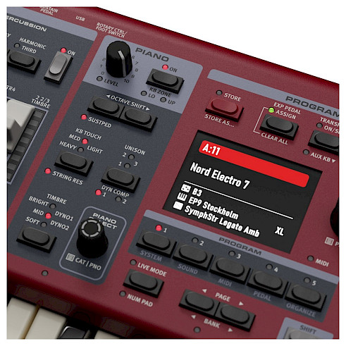 The latest generation of Nord Electro is even more powerful. It features a new programmable synthesizer section, dedicated effects for each section, and a refined control panel with a high-resolution color screen. It also combines the latest features of the brand's keyboard piano sections with the organ modeling found in the recently released Nord Organ 3. The Nord Electro 7 thus offers exceptional versatility in a lightweight instrument that remains easy to use and is perfectly sized for the stage.