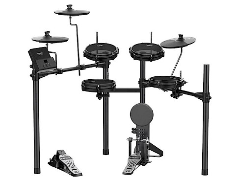 The DM-110 is an upgrade of the popular DM-1X model, featuring an improved look and a more space-efficient design. The frame is optimized to align better with the layout of acoustic drums, ensuring a more natural and comfortable playing experience.