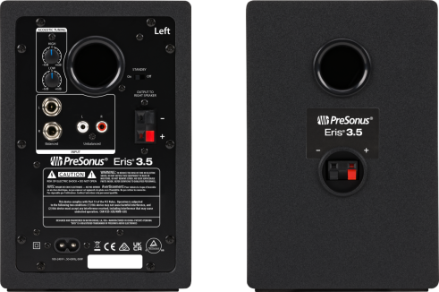 PreSonus® Eris®-series studio monitors are used worldwide by audio engineers and producers who need to hear every detail of their recordings. Eris 3.5 media reference monitors deliver studio-quality sound in an elegant, compact form factor that makes them ideally suited for bedroom studios, video production, and high-fidelity gaming set-ups.