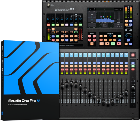 StudioLive® SE 16 is a compact, tour-friendly, rack-mountable digital mixer that can be quickly and easily scaled for both installed and mobile applications. It delivers extensive mixing capabilities, studio-grade audio quality, flexible bus configuration, and advanced integrated recording capabilities – plus a full suite of powerful software featuring Studio One Pro.