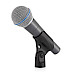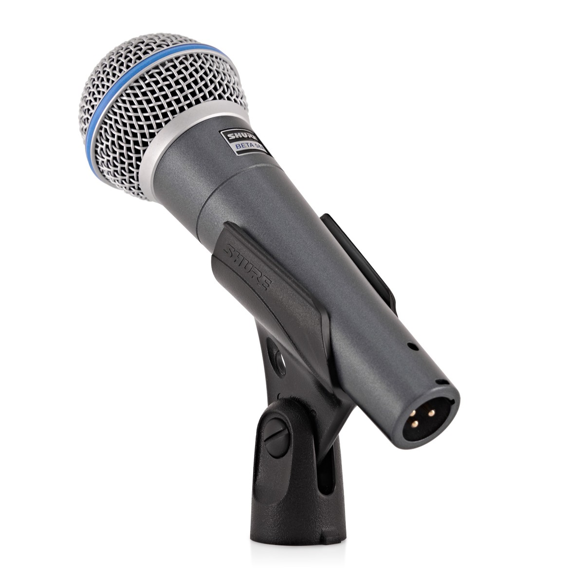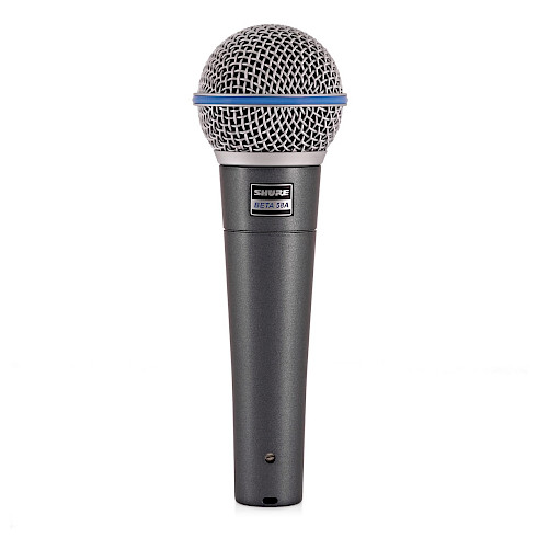 The Shure BETA58®A dynamic microphone is precision-engineered for vocals in professional live sound reinforcement and studio recording applications. A tailored frequency response accentuates the clarity of vocals, and a tight, supercardioid pickup pattern ensures high gain before feedback, maximum sound isolation, and minimum off-axis tone coloration.