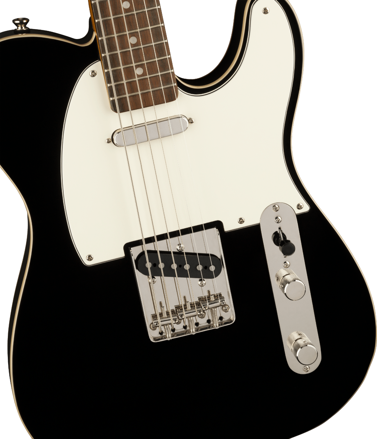 The vintage-style bridge features barrel saddles and a string-through-body design for optimal resonance.