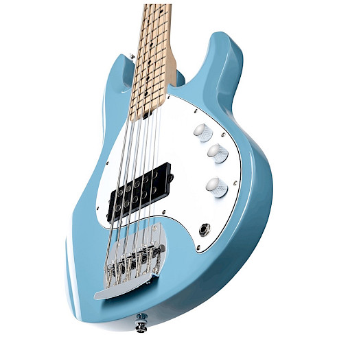 The 5-string StingRay RAY5 bass features a 9v active preamp, a low noise humbucking pickup, and a fully adjustable heavy duty bridge.