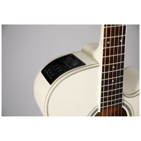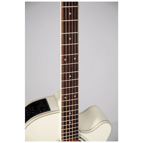 The GN37CE offers Takamine’s distinctive Pearl White finish in our popular, great-sounding NEX cutaway shape. It features a solid spruce top, and maple back and sides for a smooth and glossy sounding guitar that will fit great on stages anywhere, and with any genre of music. The GN37CE is easy to amplify when needed, as it comes with our legendary TP-3G electronics.