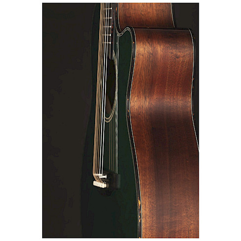 Takamine is proud to present LTD2025, our annual special Limited Edition guitar. This year's elegant offering is an OM cutaway guitar with back and sides made of gorgeous Hawaiian koa. Koa is a silky smooth, syrupy tonewood that is paired with a top made of Engelmann spruce, finished in distinctive and beautiful Antique Evergreen finish. The fingerboard and bridge are made of ebony, and the fingerboard is inlaid with brass circles that will age with unique patina, adding to the timeless nature of this guitar.
