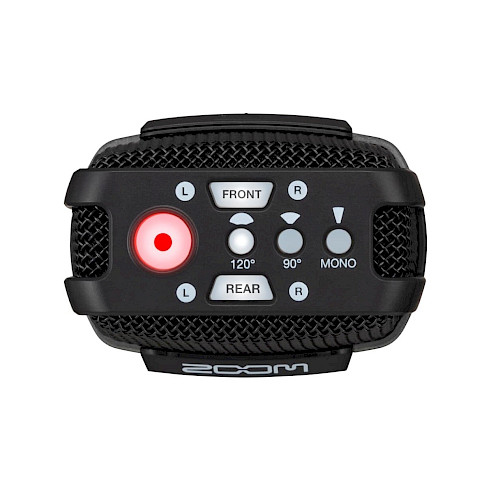 Stel je pick-up patroon in op 90º of 120º stereo, of kies mono voor een hyper directionele pick-up, waardoor achtergrondruis wordt verminderd. Kies vervolgens om op te nemen vanaf de voorkant, achterkant of activeer beide kanten voor een surround sound-opname.
