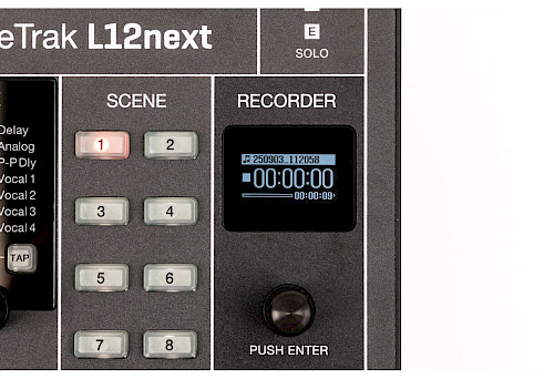 The L12next has advanced recording features and captures up to 14 tracks at 24-bit/96 kHz plus a stereo mix. Its new OLED screen streamlines recording controls and setup.